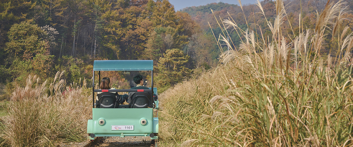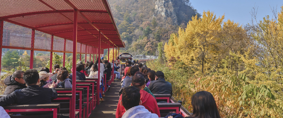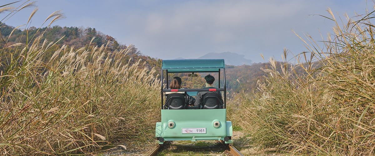 游览主题隧道并且可一眼目睹北汉江的锦绣绝景的铁轨脚踏车路线!