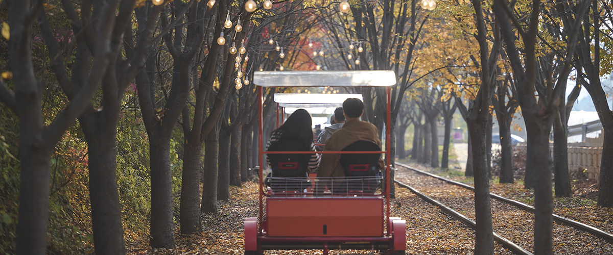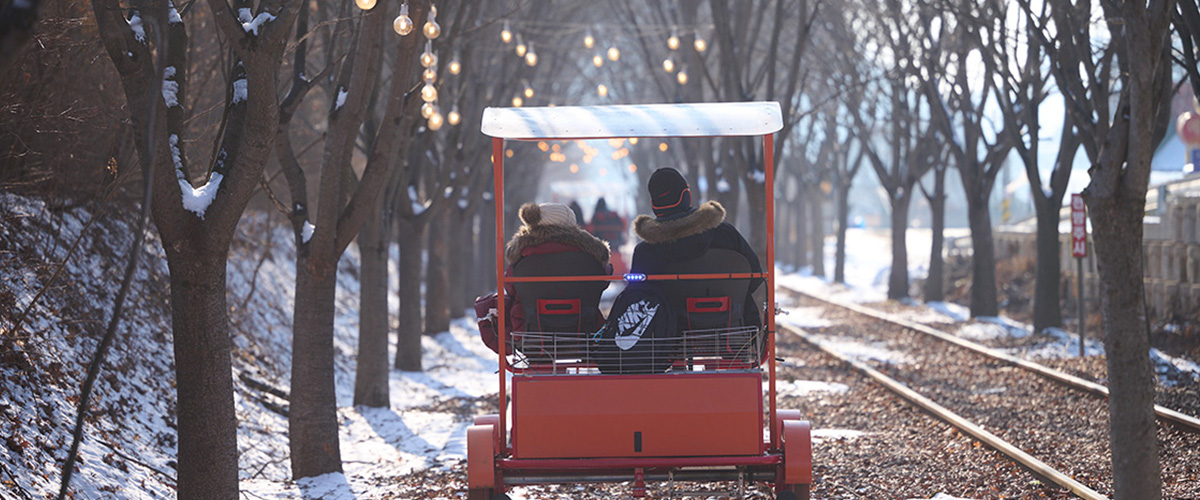 출발만 가볍게 저어주면 부드럽게 나아가는 반자동 레일바이크!